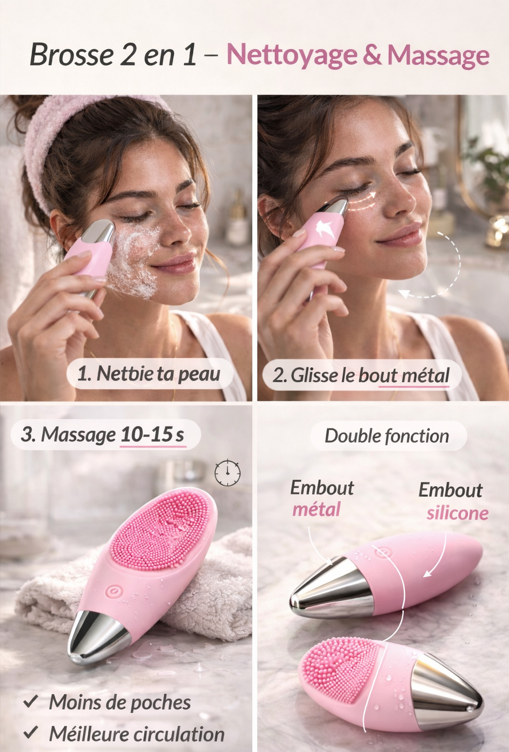 Trouvez les réponses aux questions fréquentes sur la Glow Vibe Duo Lift Nettoyante Visage ultrason.